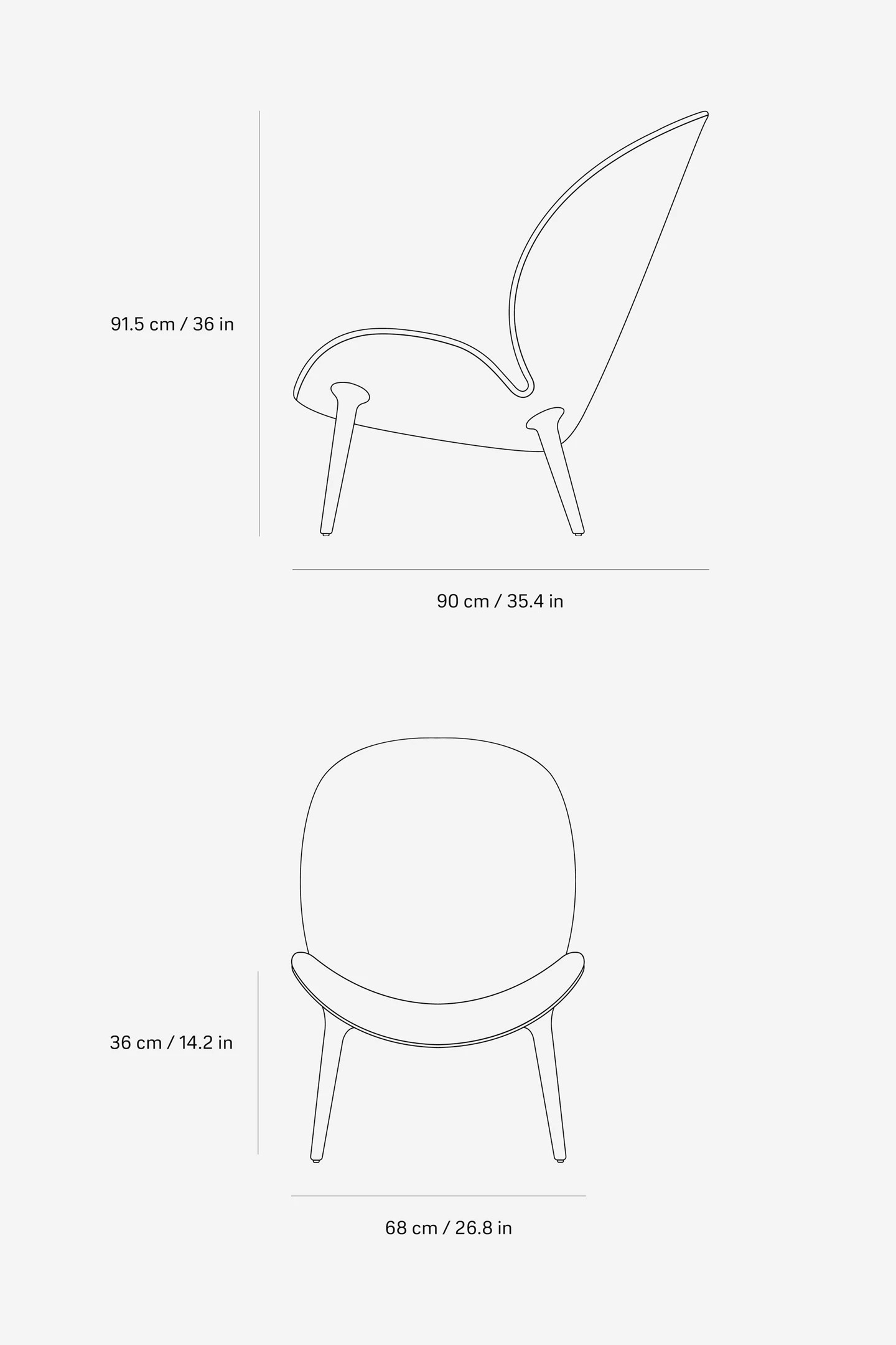 L x B x H: 68 x 90 x 91,5 cm | 26,8 x 35,4 x 36 tommer