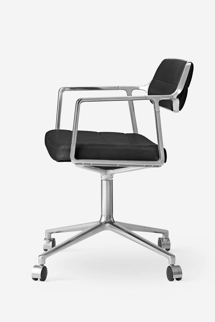 Vipp introduserer en ny stol i sin Swivel-serie ved å kombinere komforten til Vipp453+-stolen med den firbeinte basen til Vipp452-stolen. Den ekstra polstrede iterasjonen av den originale Swivel-stolen er beregnet for både bolig- og konferanserom, der folk sitter i lengre perioder, og tilbyr en større ryggstøtte og et svært komfortabelt sete.