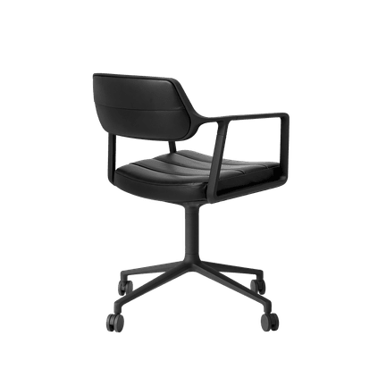 Vipp presenterer en ekstra polstret, høydejusterbar iterasjon av sin velkjente Swivel-stol. Beregnet for hjemmekontor og konferanserom. Swivel+-stolen tilbyr en større ryggstøtte og et svært komfortabelt sete. De slanke armlenene, som er gjentatt fra den originale Swivel-stolen, fortsetter rett inn i den diskrete, polstrede ryggstøtten, noe som gir stolen et nesten luftig uttrykk til tross for de solide komponentene.