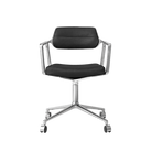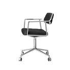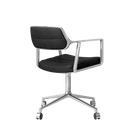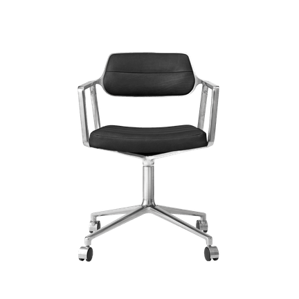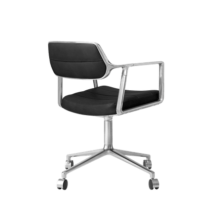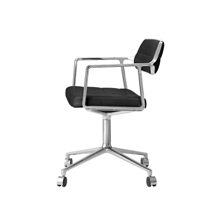 Vipp453 Svingstol, polert ramme, svart skinn, hjul