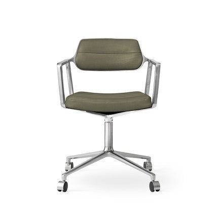 Vipp453 Svingstol, polert ramme, skinn boscogrønt, hjul