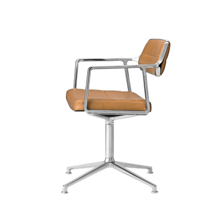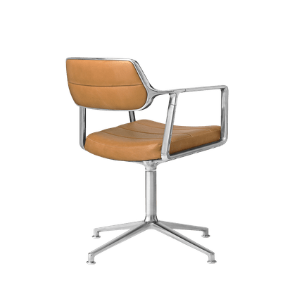 Vipp453+ Svingstol, polert ramme, kamelfarget skinn, glidere