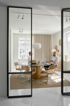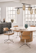 Vipp presenterer en ekstra polstret, høydejusterbar iterasjon av sin velkjente Swivel-stol. Beregnet for hjemmekontor og konferanserom. Swivel+-stolen tilbyr en større ryggstøtte og et svært komfortabelt sete. De slanke armlenene, som er gjentatt fra den originale Swivel-stolen, fortsetter rett inn i den diskrete, polstrede ryggstøtten, noe som gir stolen et nesten luftig uttrykk til tross for de solide komponentene.