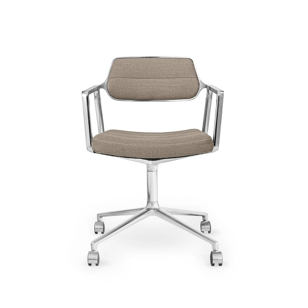 Vipp453+ Svingstol, polert ramme, Tide - mørk sand tekstil, hjul