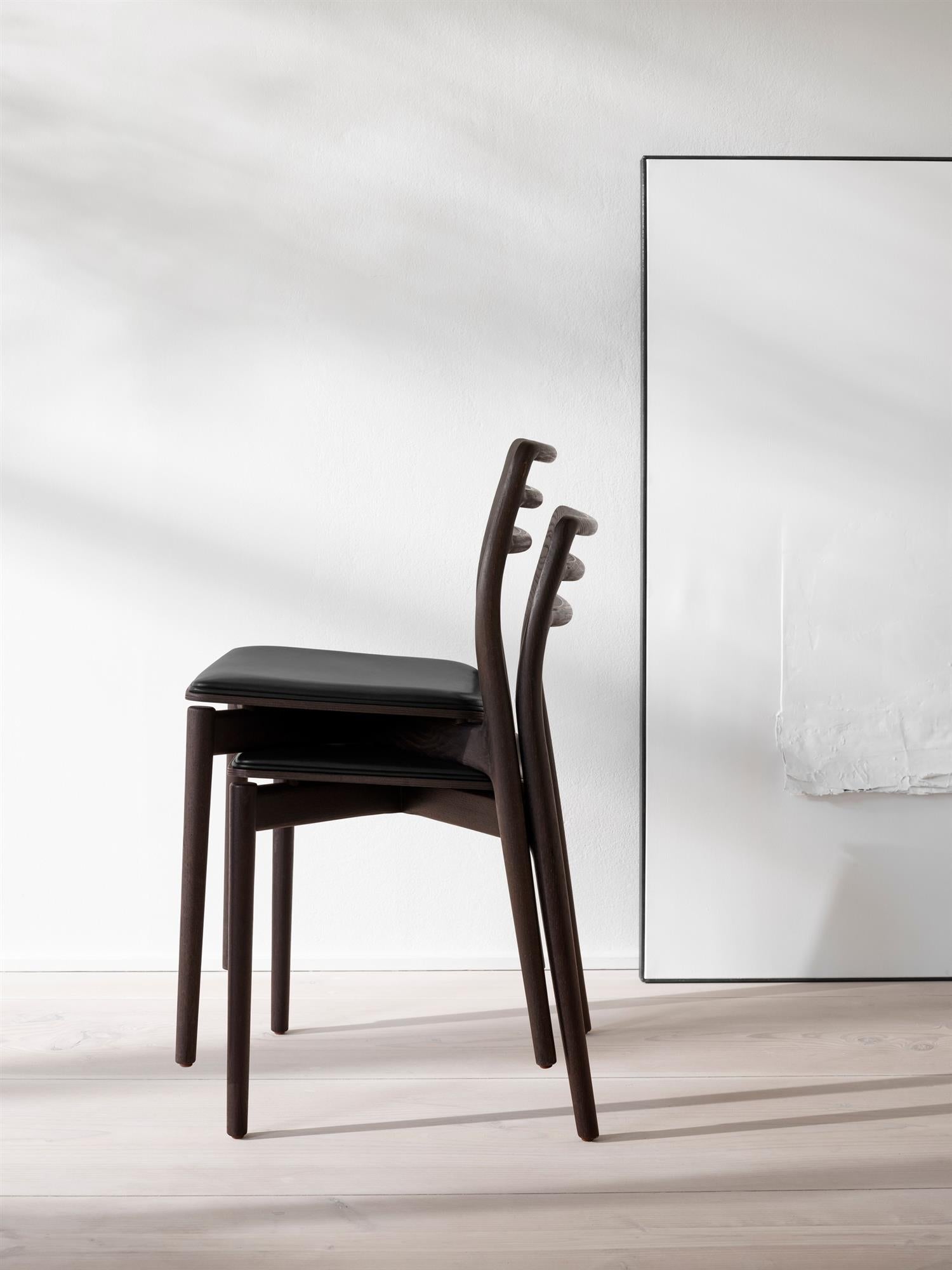 Vipp481 Hyttestol, Mørk eik med svart skinn