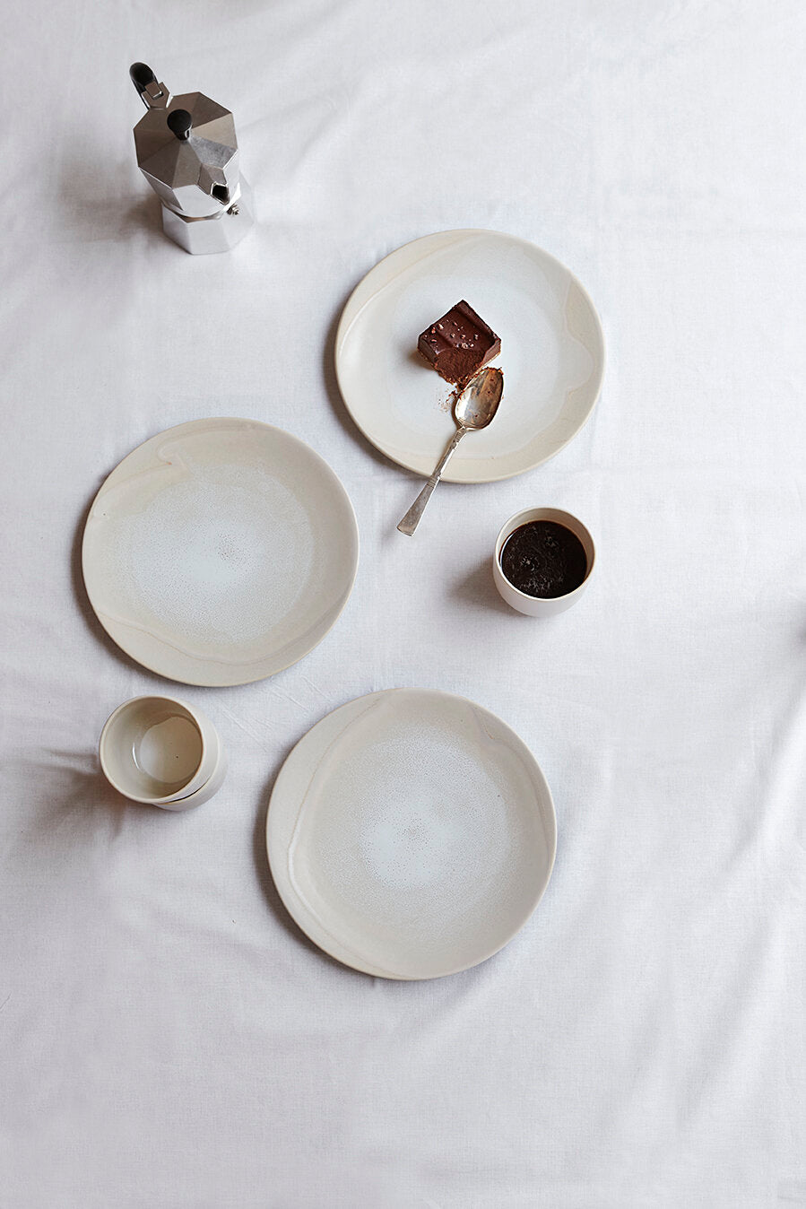 Melk Plate small er vakkert, subtilt og funksjonelt steintøy. Den keramiske tallerkenen gir et mykt preg til en borddekking, og passer like godt til å servere en lavmælt frokost som til et intimt middagsselskap. Melk er en keramikkserie og hvert produkt er håndlaget med en unik glassteknikk. Keramikken er designet av Anette Krogstad, og designeren har utviklet en subtil kombinasjon av hvite toner som minner om fuktig lin, bomull og silketekstiler eller rester av en melkelignende væske på en matt overflate. Hvert produkt er unikt, og siden alle deler er håndglasert, kan det være små variasjoner i glasur, mønster og farge.