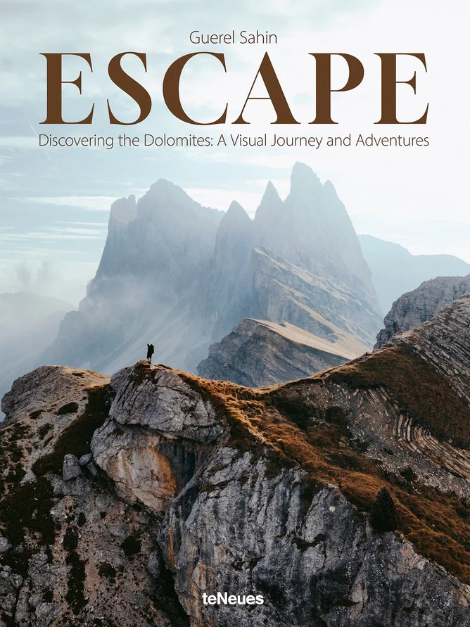 Dolomittene er blant de mest fengslende, vakre og mangfoldige tur- og fjellklatringsområdene i Europa. Den nye stjernen på den unge utendørsfotograferingsscenen, Guerel Sahin, har nå levert en imponerende fjellfotobok av dette unike naturlandskapet med «Escape». I denne visuelt imponerende boken presenterer han 25 av sine favorittfotosteder, og formidler perfekt den robuste og utemmede skjønnheten i fjellene.