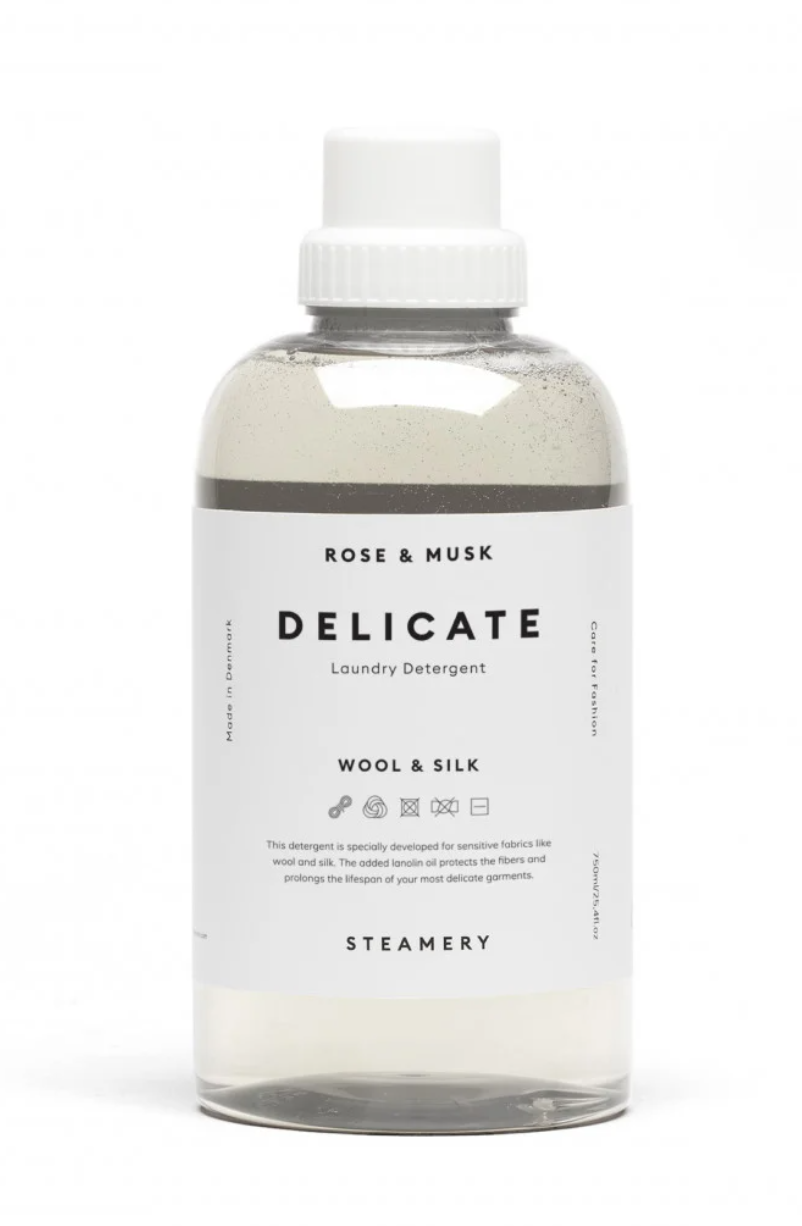 Det høyeffektive vaskemiddelet Delicate er spesielt utviklet for ømfintlige tekstiler som ull og silke. Det er enzymfritt og inneholder lanolinolje som pleier og beskytter fibrene, gjør dem mykere og gir dem ekstra glans.