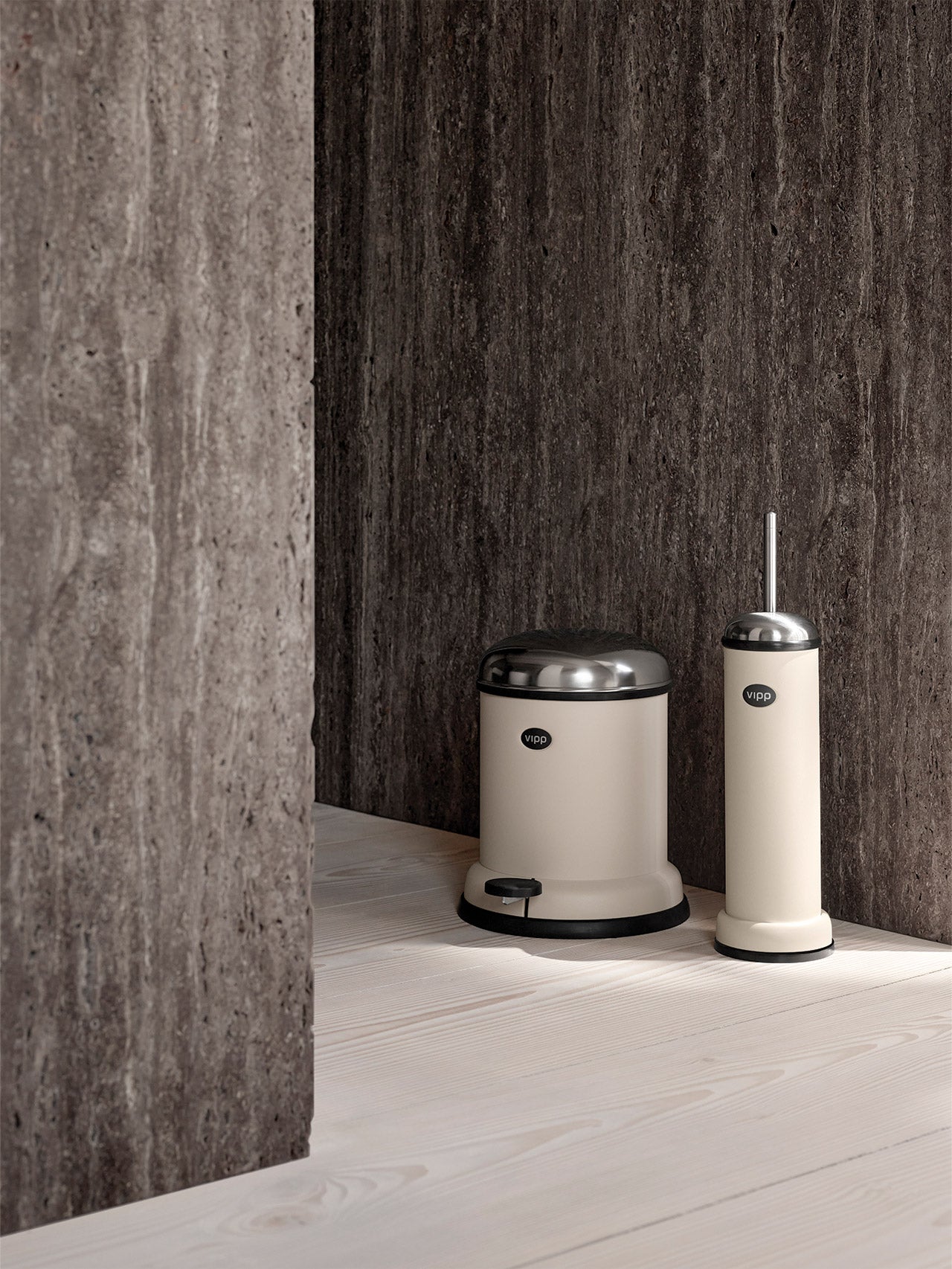 Vipp toalettbørste er en raffinert nødvendighet på baderommet. En silikonring på toppen av toalettbørsten gir lufttett lukking, mens den ekstra vekten på basen sikrer god stabilitet. Børstehodet og innerrøret til toalettbørsten kan erstattes.