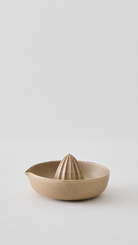 Sitruspresse i glasert steintøy med reaktiv glasur og en avrundet form for effektiv juice. Et stilig og funksjonelt tillegg til kjøkkenet ditt.