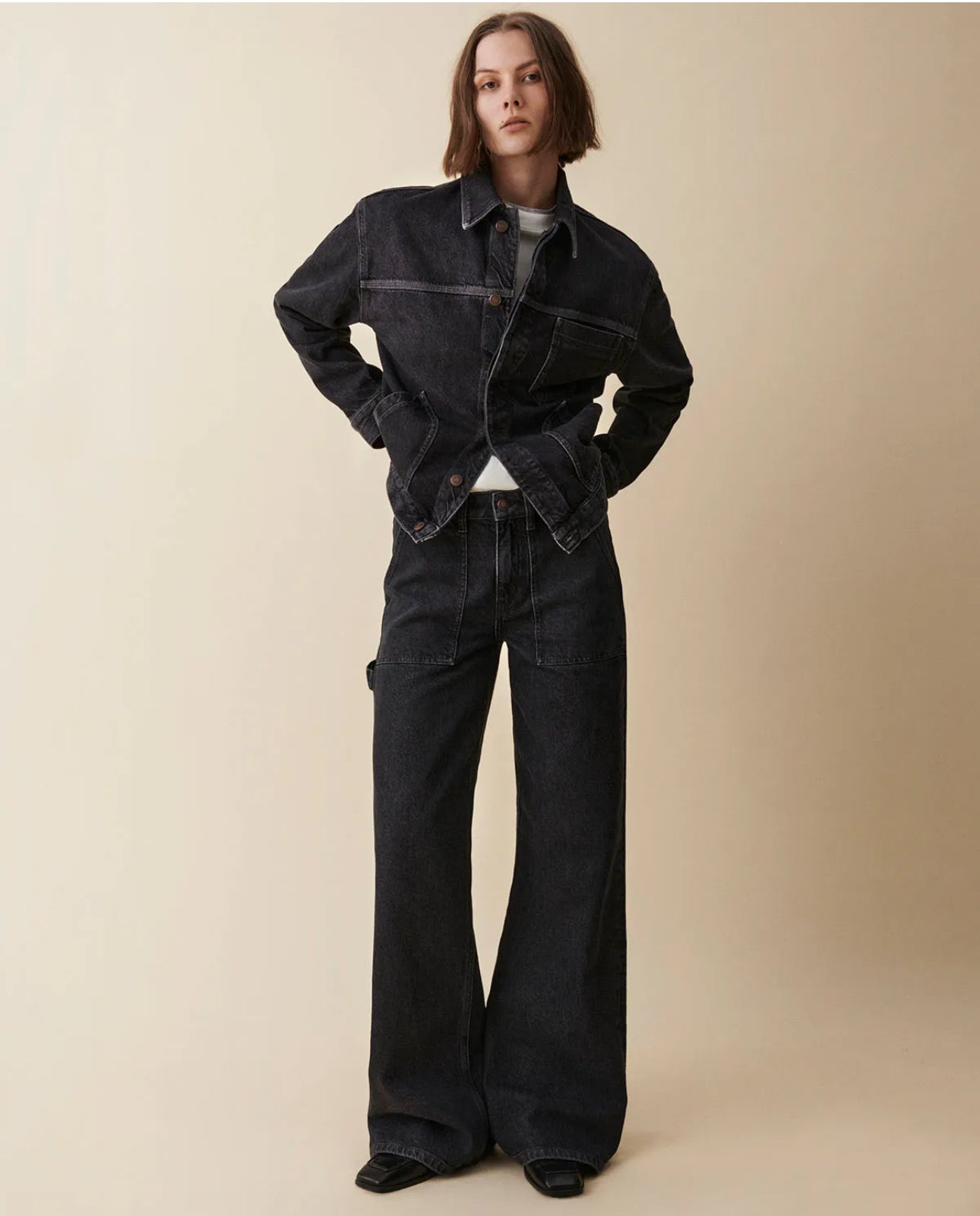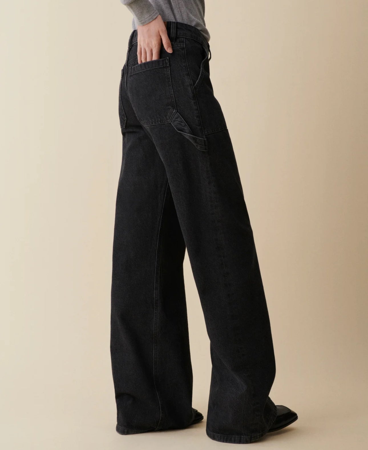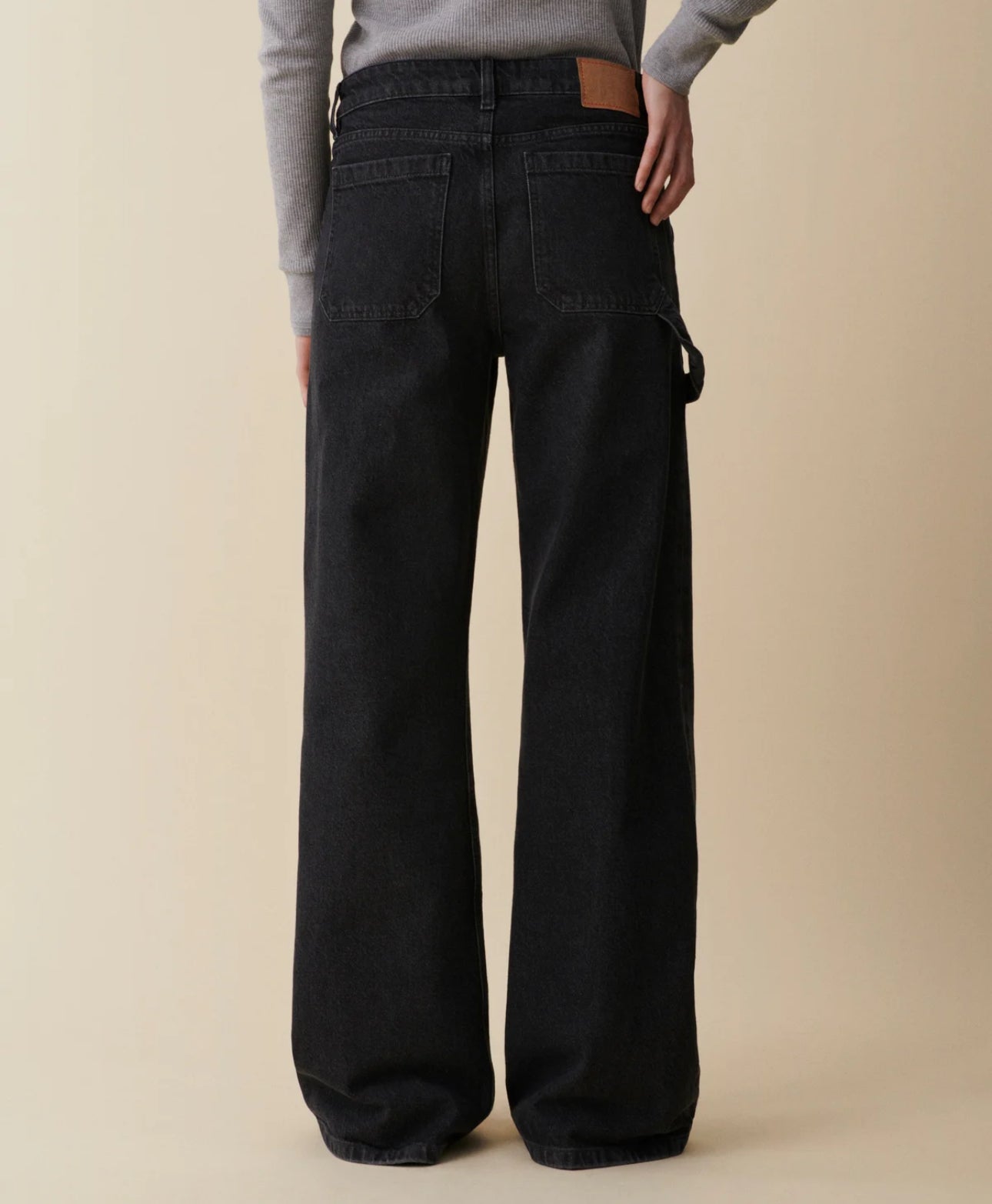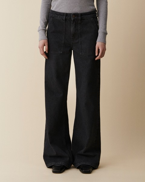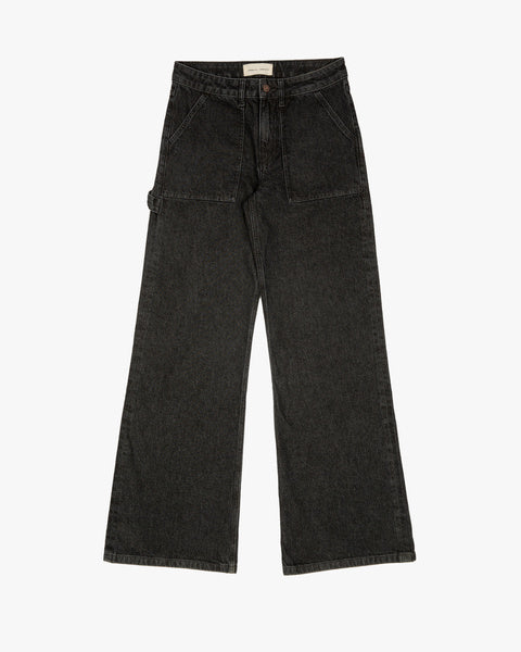 'Guell' is a carpenter-inspired flare fit with refined workwear details. Crafted from rigid denim, it features a low-rise, extra-long loose-leg flare, front and back patch pockets, and a distinctive hammer loop. This style seamlessly blends functionality with relaxed elegance, offering a refined and versatile addition to your wardrobe.Model is 175 cm/5'9” and wears waist 26 and length 34.