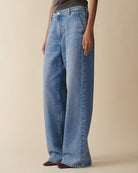 Med sin midtre midje, sjenerøst brede rette ben, tilbyr 'Belem' en tidløs silhuett. Den tilpassede toppen, sammen med en avslappet drapering og senket skritt, gir et snev av uformell sofistikering