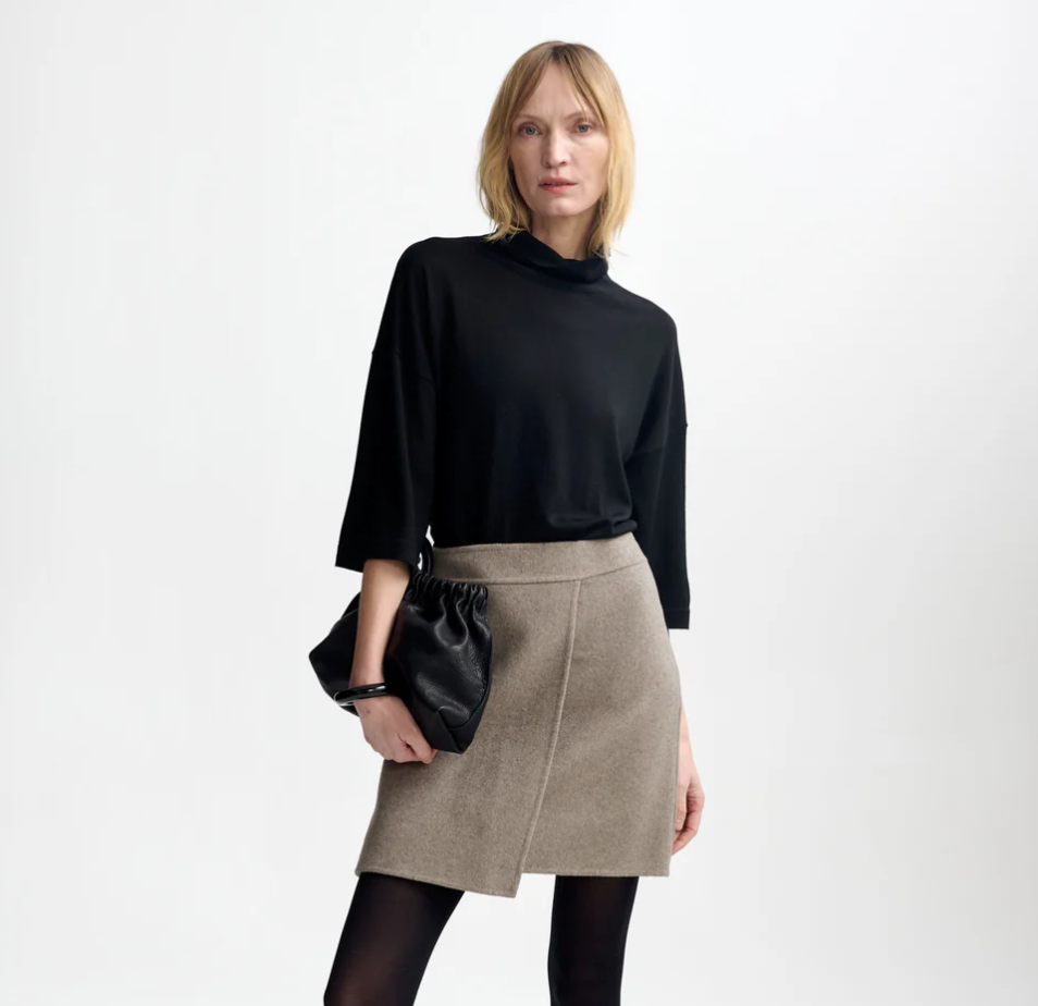 Et rent A-fôret skjørt i myk dobbel ull med usynlig glidelås i siden. Kvalitet: 80% ull 20% polyester