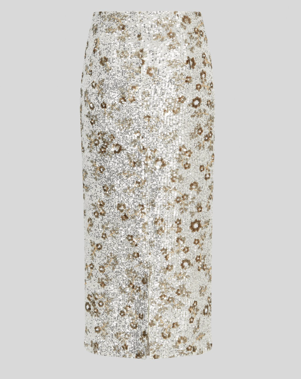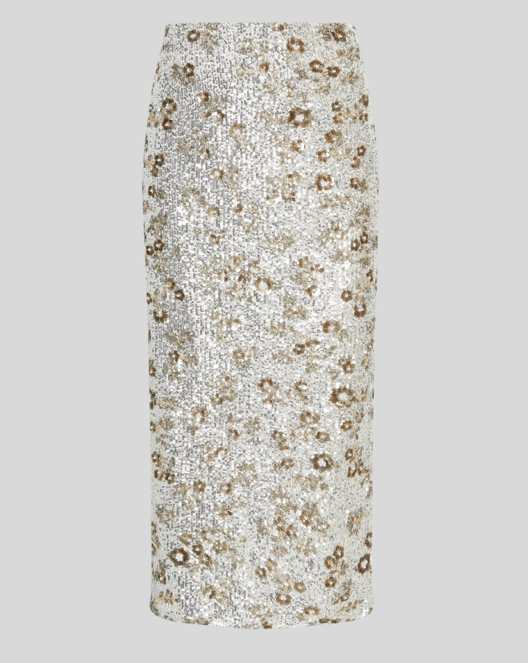 MSCHMagnolia-skjørtet er laget med omhyggelig oppmerksomhet på detaljer, og er designet for å løfte antrekket ditt til både uformelle og formelle anledninger. Skjørtet har høy midje og et rett snitt. De skimrende paljettene fanger lyset vakkert og gir et snev av glamour og raffinement. MSCHMagnolia-skjørtet er laget av materialer av høy kvalitet og lover holdbarhet og komfort. Det lette stoffet gir enkel bevegelsesfrihet, noe som gjør det til et ideelt valg for dansing eller bare for å nyte en kveld på byen.