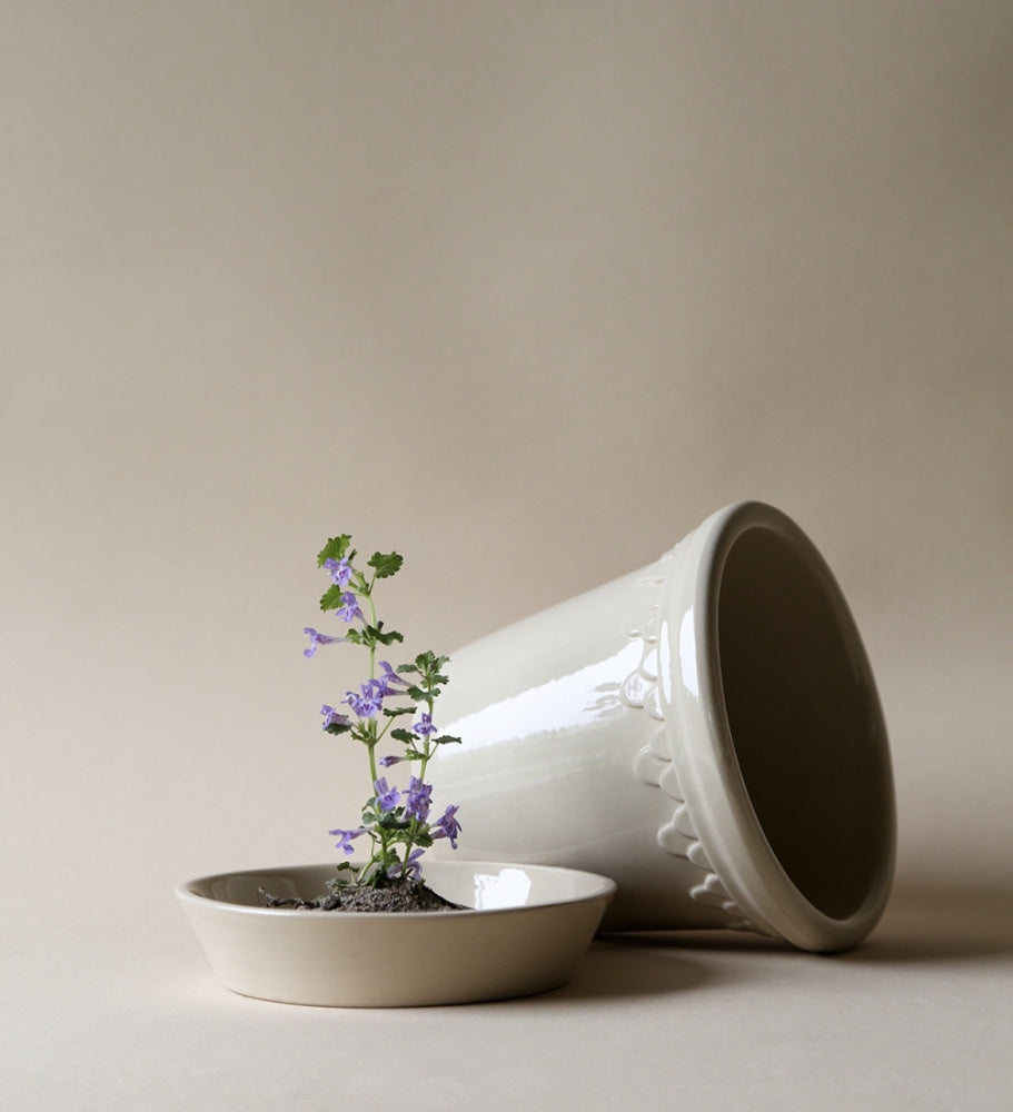 Københavner-blomsterpotten fra Glazed by Bergs-kolleksjonen kombinerer det tidløse designet fra 1860-tallet med en håndglasert finish i dype, livlige farger. Inspirert av potter laget for Fredensborg slott, har denne klassikeren beholdt sin karakteristiske form, nå forsterket av en rik og glansfull glasur som gir den et raffinert uttrykk.