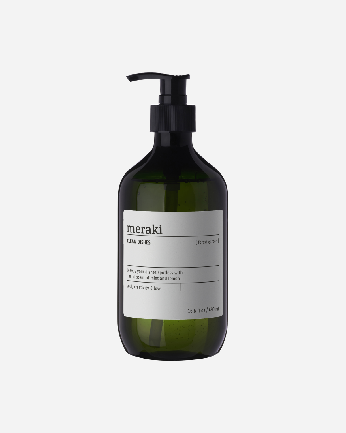Gjør oppvasken litt mer morsom med velduftende oppvaskmiddel, som samtidig pynter opp på kjøkkenet. Dette effektive Svanemerkede oppvaskmiddelet, Forest Garden, fra Meraki har en delikat duft med noter av mynte og sitron, og er i en vakker emballasje du ønsker å ha stående fremme. Til oppvasken skal det brukes 2 ml for 5 liter vann. Vaskemiddelet kan ikke brukes i oppvaskmaskinen.Obs: Kombiner med veggoppheng for praktisk oppbevaring.