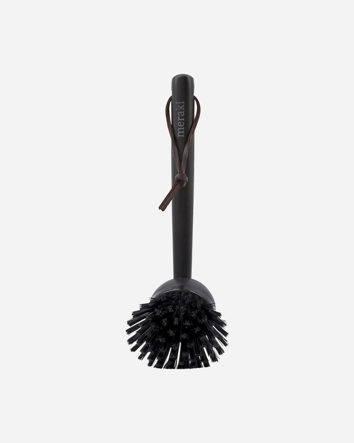 Denne oppvaskbørsten fra Meraki er den perfekte følgesvennen til oppvaskmiddel. Den er laget av bambus og har en svart flekkete design som setter fokus på treet. Håndtaket gir deg et behagelig grep mens børsten i seg selv er utskiftbar for å forlenge oppvaskbørstens levetid (artikkelnummer 304870043). Når du er ferdig med oppvaskbørsten kan du bare henge den på en krok ved hjelp av stroppen. Den sortbeisede fargen kan falme over tid