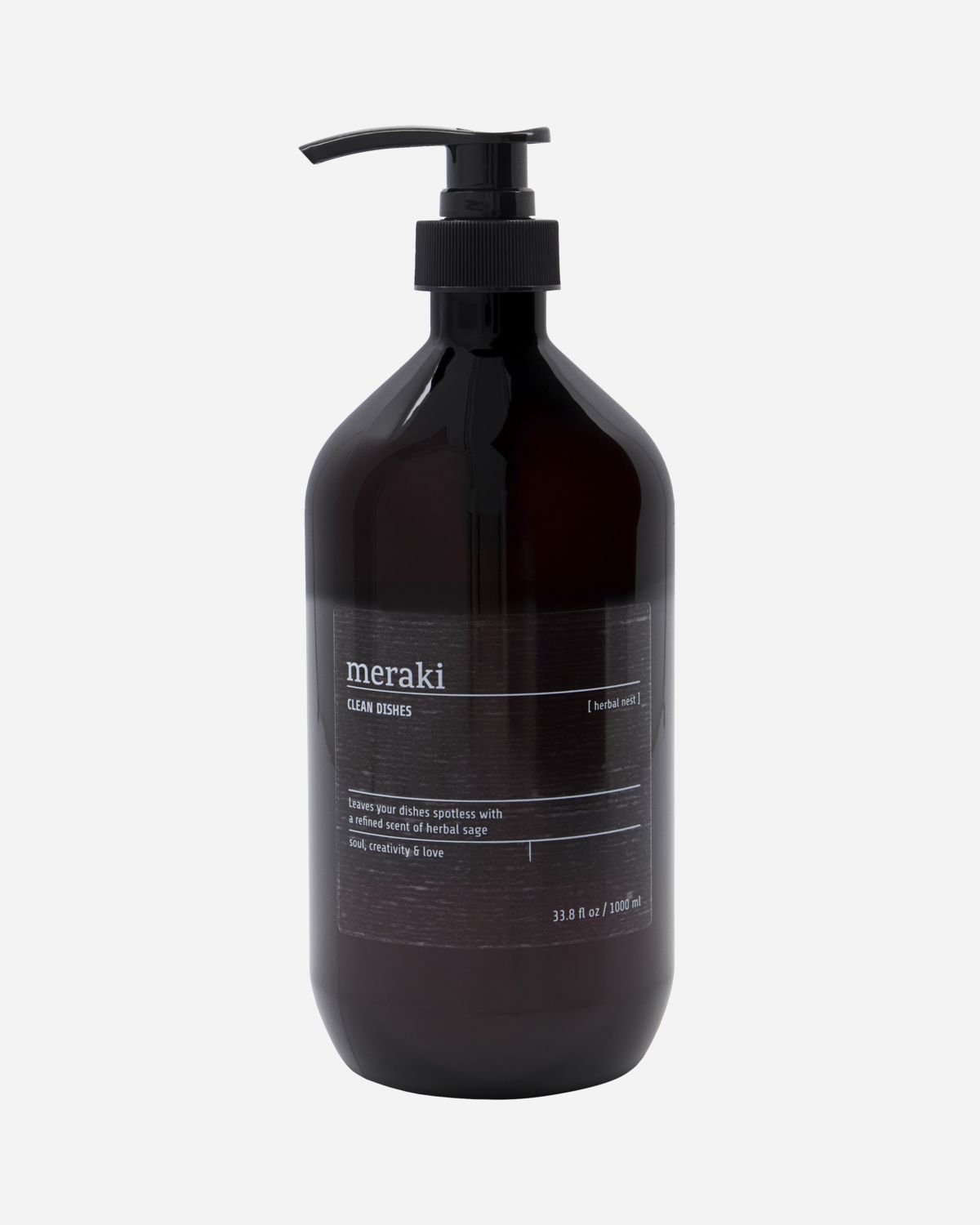 Dette oppvaskmiddelet fra Meraki kalles Herbal Nest og er Svanemerket. Takket være pumpedesignet er det enkelt å få riktig dosering for dine behov - og du når langt med overraskende lite. Nyt det myke skummet i denne såpen med en lett urteduft med noter av salvie, sitrus og moskus. Design og funksjonalitet kombineres flott sammen i denne flasken som du lett bare kan ha stående framme på kjøkkenbenken. Bruk 2 ml oppvasksåpe til 5 L vann. Oppvasksåpen kan ikke brukes i oppvaskmaskinen.