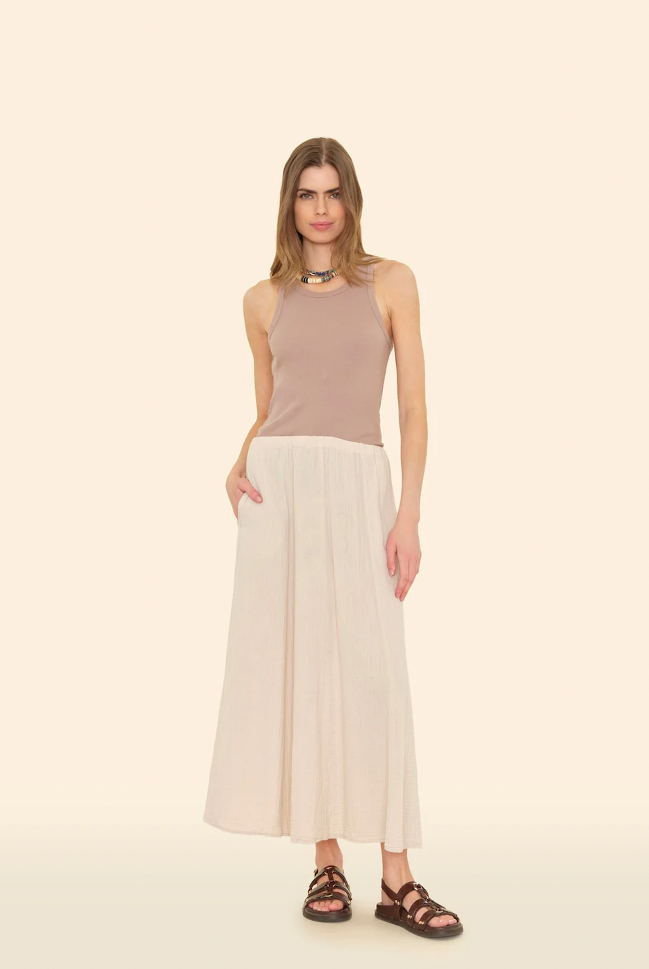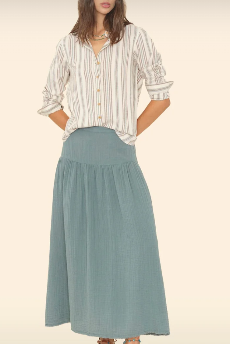 Xirena er ett merke fra Calefornia hvor produktene lages i Los Angeles. Xirena er kjent for sine fargerike skjorter, kjoler og topper i de mykeste kvaliteter. Skjortene er ett av hverdags plaggene vi på Olivias hus sverger til. Skjortene fra Xirena blir fort en favoritt med sine rene kvaliteter, klassiske snitt og fine farger.