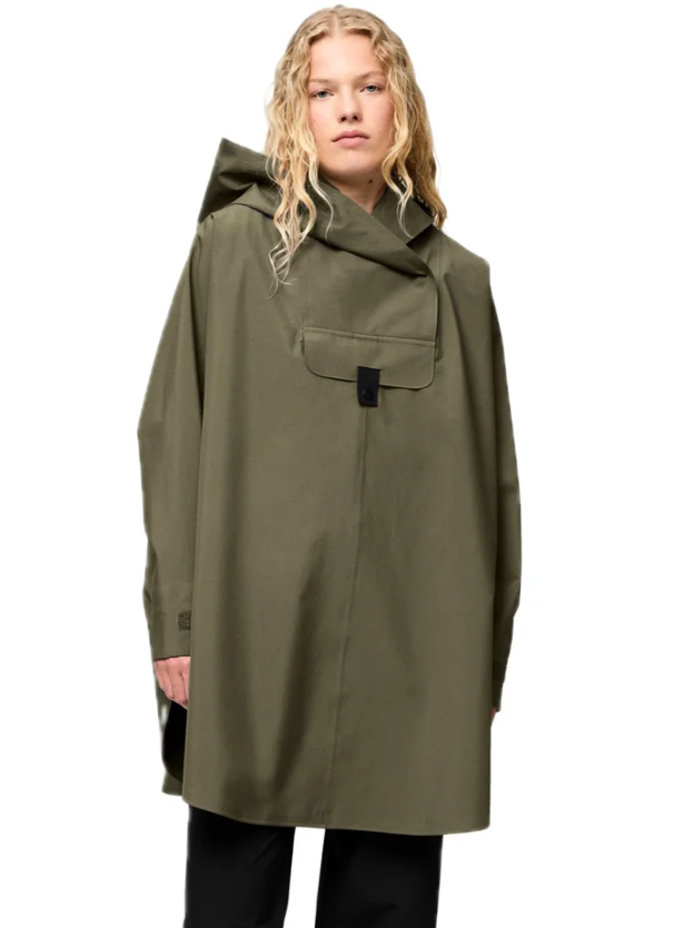 Bergen Poncho har A-formet silhuett. Den er vanntett, vindtett og pustende og passer i alle typer vær - hele året! Oversized passform. – Justerbar ermeåpning med elastisk lycra-mansjett