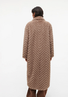 SCARLET Faux Mink Coat er et ekte statement, designet for å skille seg ut. Denne lange, luksuriøse kåpen har et dristig sikksakktrykk som gir en moderne vri til klassisk kåpe. Den er laget av ultramyk faux mink, og tilbyr både varme og slagkraftig stil. Enten den er lagt over hverdagsantrekk eller bæres som en kveldsshowstopper, bringer SCARLET Faux Mink Coat uanstrengt eleganse