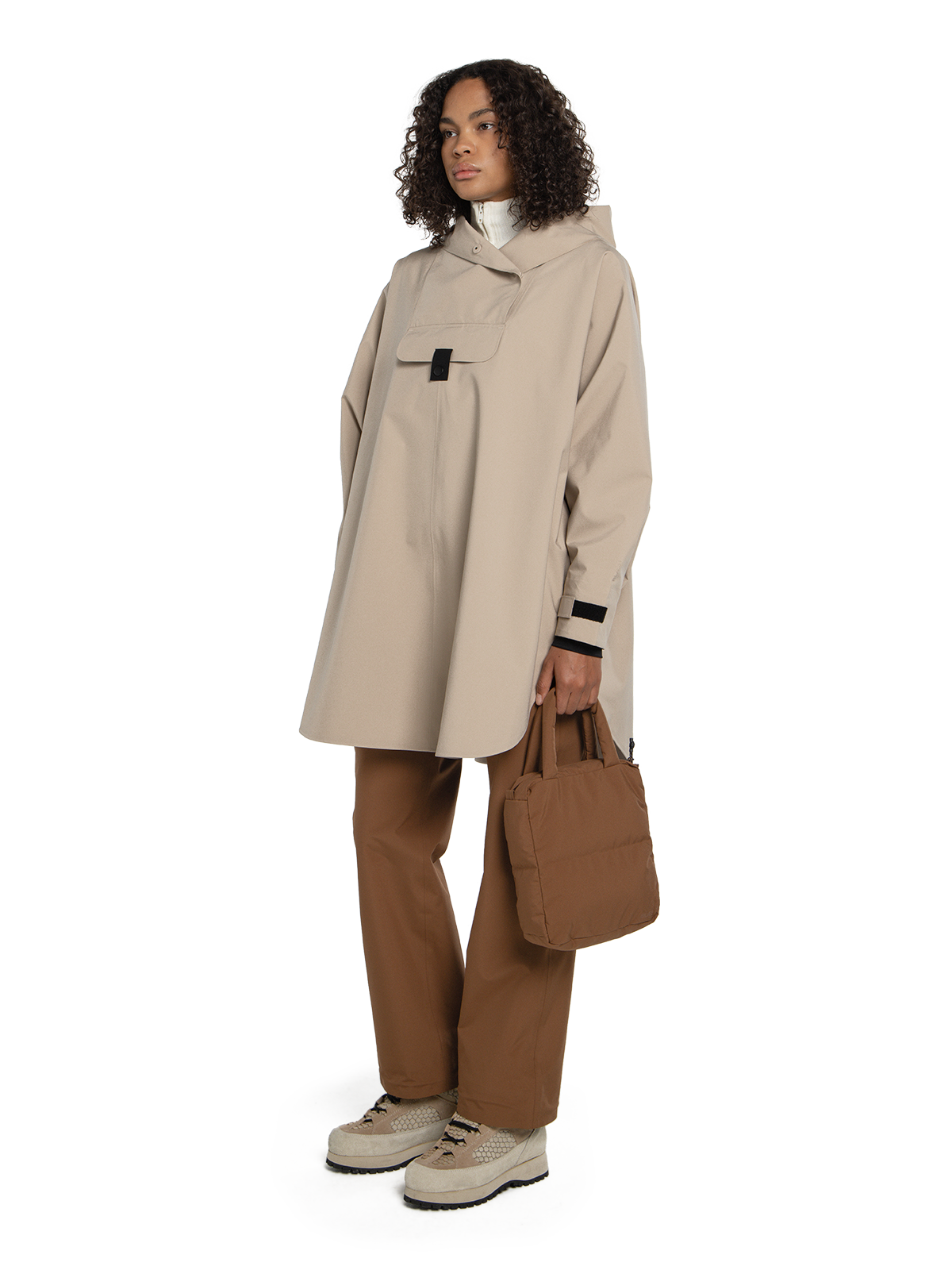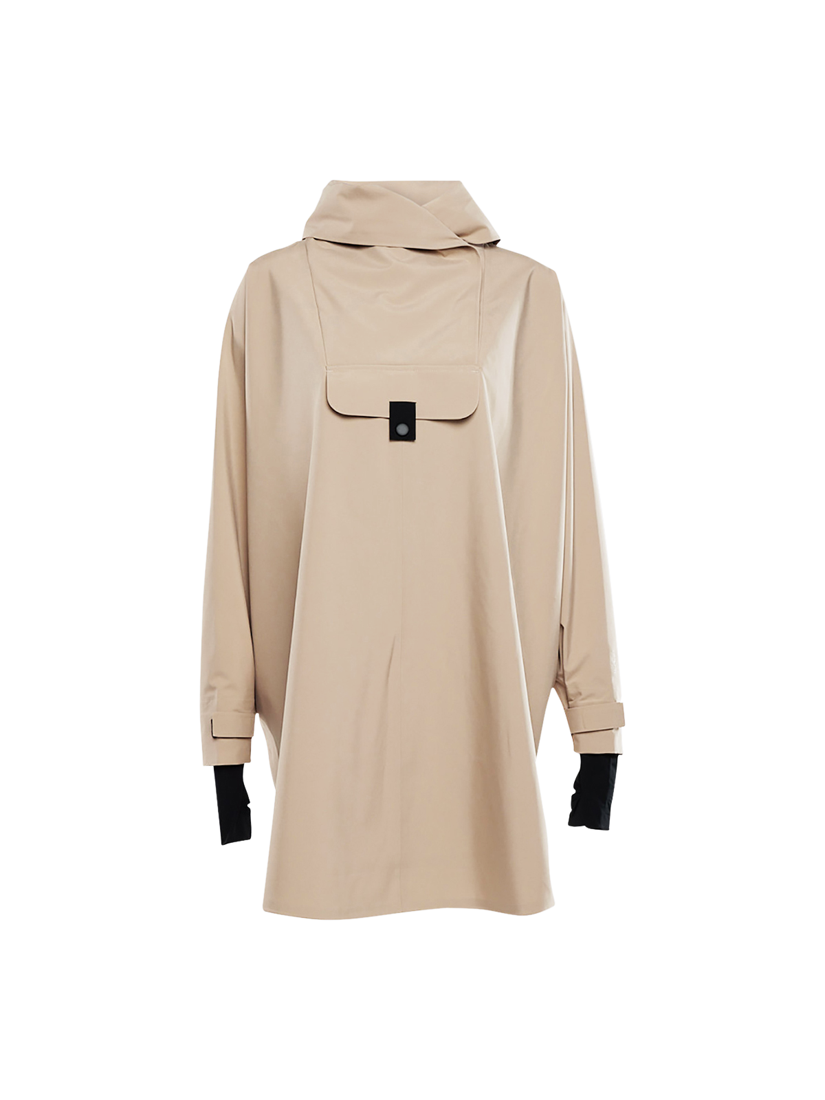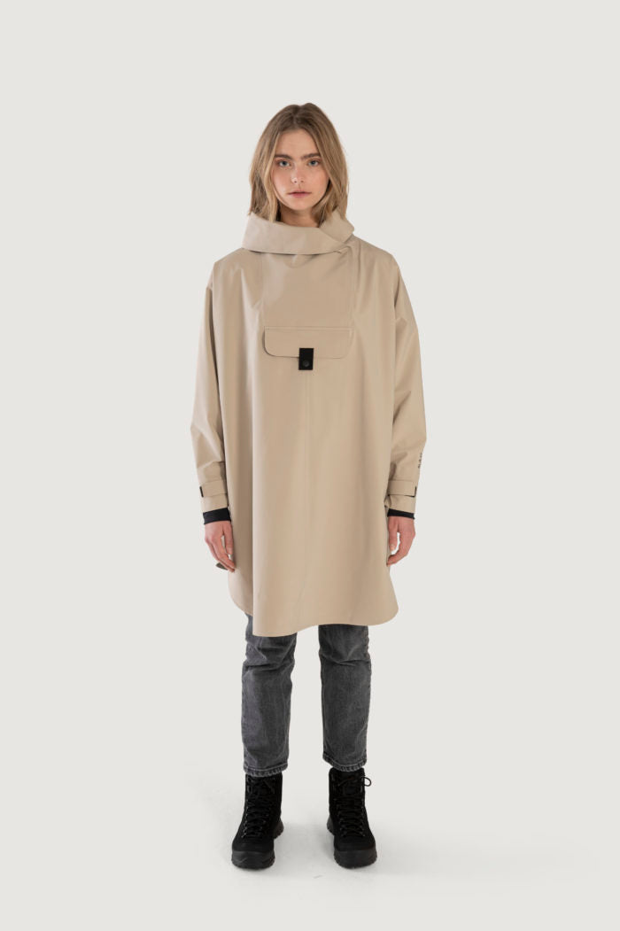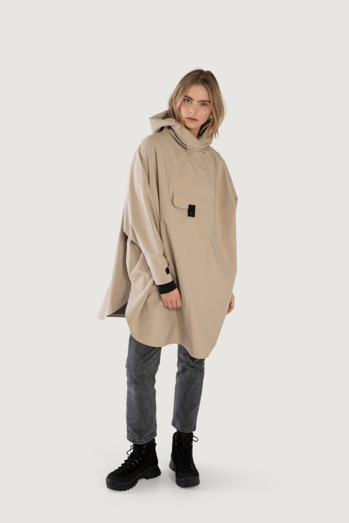 Bergen Poncho har A-formet silhuett. Den er vanntett, vindtett og pustende og passer i alle typer vær - hele året! Oversized passform. – Justerbar ermeåpning med elastisk lycra-mansjett