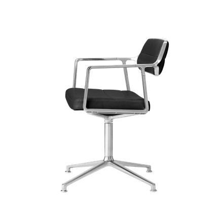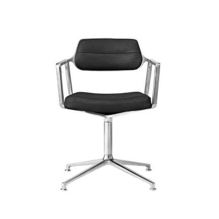 Vipp presenterer en ekstra polstret, høydejusterbar iterasjon av sin velkjente Swivel-stol. Beregnet for hjemmekontor og konferanserom. Swivel+-stolen tilbyr en større ryggstøtte og et svært komfortabelt sete. De slanke armlenene, som er gjentatt fra den originale Swivel-stolen, fortsetter rett inn i den diskrete, polstrede ryggstøtten, noe som gir stolen et nesten luftig uttrykk til tross for de solide komponentene.