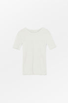 Myk bomulls-T-skjorte med pointelle-tekstur, korte ermer og babylock-kanter.